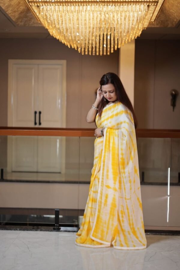 Sunshine Swirl – Yellow Shibori Chinon Saree